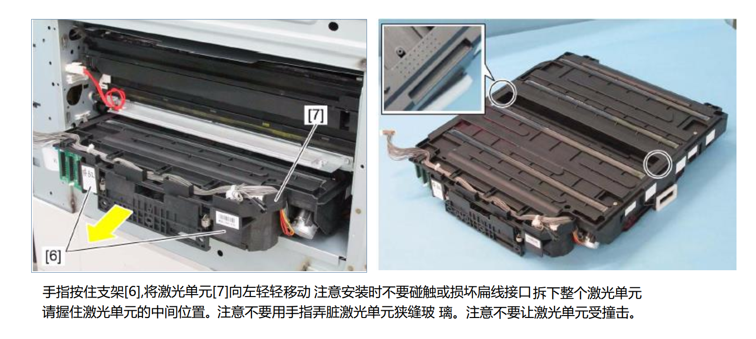 既然我们已经确定了是激光光路故障那么开始进行以下一系列解决流程:(以下部分内容采自于维修拆装手册)