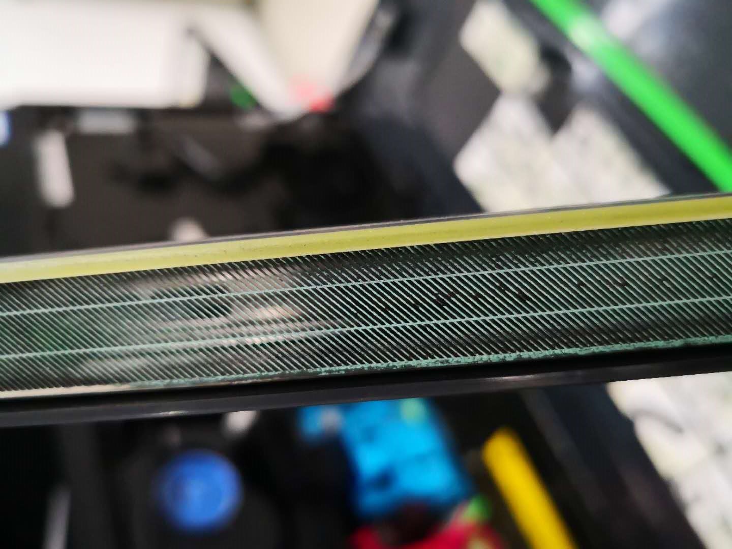 - 4、针对主充处格栅网处积累太多绿色锈,进行清洁处理。(有条件可采用去锈喷剂直喷清洁,其次也可以用汽油或酒精侵泡后用牙刷刷干净,没有条件的话用水洗也可,但是要注意清洁后檫干要保证无液体存留否则可能导致主充漏电故障,好像是会报C类故障)清洁后复位再复印白板得出全黑画面发现故障还是存在。