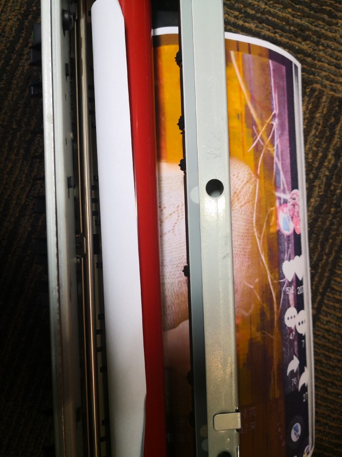 取出定影看了看还是没有发现什么异常现象,清理出卡纸后,让客户再次演示打印时我们发现了问题,客户打印的是三幅彩色的图片,在出第二张时就又卡住,再重试第一张时也卡住,我不由怀疑是不是定影分离是否有问题,尝试调整定影上的间隙和观察分离爪以及传感器是否有异常,但并未发现有异常。却总是卡纸,于是我再尝试了一会,直接打印错误列表等文档却没有卡纸,总算理出问题在那里了!