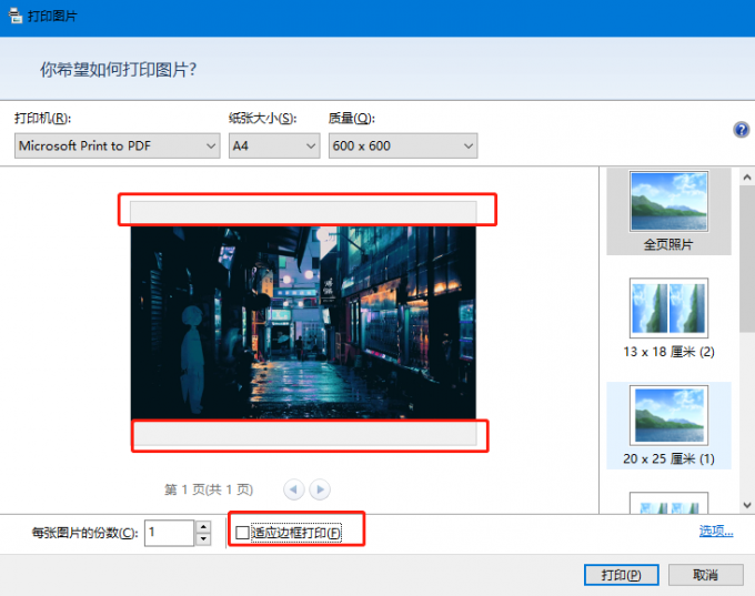 基于此问题我们在客户电脑上打印图片时尝试对打印设置进行修改,在打印图片前将适应边框打印的勾取消掉后,连续打印十来份图片也再没有出现过卡纸现象,基本上可以确定卡纸故障已经排除。