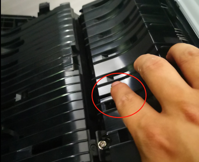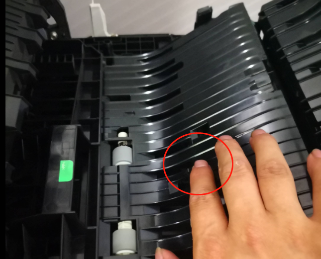打开侧门盖板用手指拨动出口反转传感器笔杆