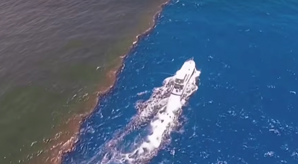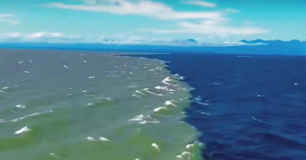阿拉斯加海湾是世界上九大著名海湾之一,海面呈现两种颜色,因为密度关系两片海无法融为一体……