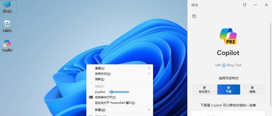 还可以直接从桌面右键菜单中添加打开 Windows Copilot 的选项: