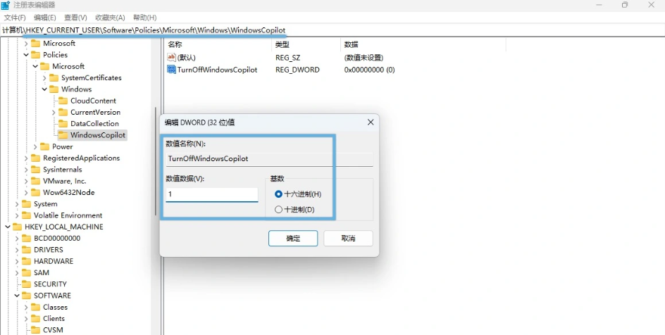如果你使用的是 Windows 11 家庭版,可以通过注册表来禁用 Copilot: